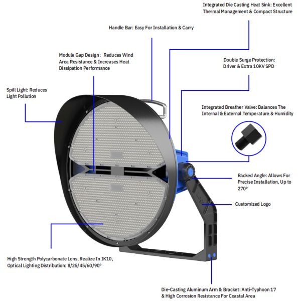 400 500 800 1000W IP66 5years Warranty LED Stadium High Mast Light With Adjustable Bracket For Court Airport Images |