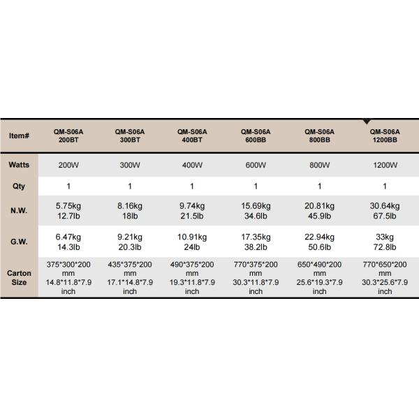 | Items | MF-S06A 200BT | MF-S06A 300BT | MF-S06A 400BT | MF-S06A 600BT | MF-S06A 800BT | MF-S06A 1200BT |