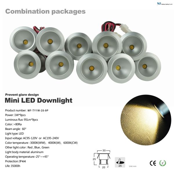 The LED Mini Down Lights are compact, energy-efficient fixtures with a 1W power rating and IP44 rating for indoor and outdoor use. Their